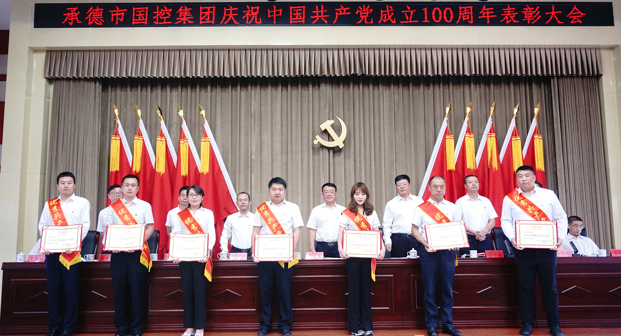表彰大會氣氛隆重?zé)崃遥髸谌珗銎鹆⒏叱獓杪曋虚_幕。集團公司黨委決定,授予許平凡等7名共產(chǎn)黨員“優(yōu)秀共產(chǎn)黨員”稱號,授予胡斌偉等3名黨務(wù)工作者“優(yōu)秀黨務(wù)工作者”稱號。現(xiàn)場向先進個人頒發(fā)了證書,并向參加“慶祝中國共產(chǎn)黨成立100周年書畫攝影大賽”獲獎的人員頒發(fā)了榮譽證書。