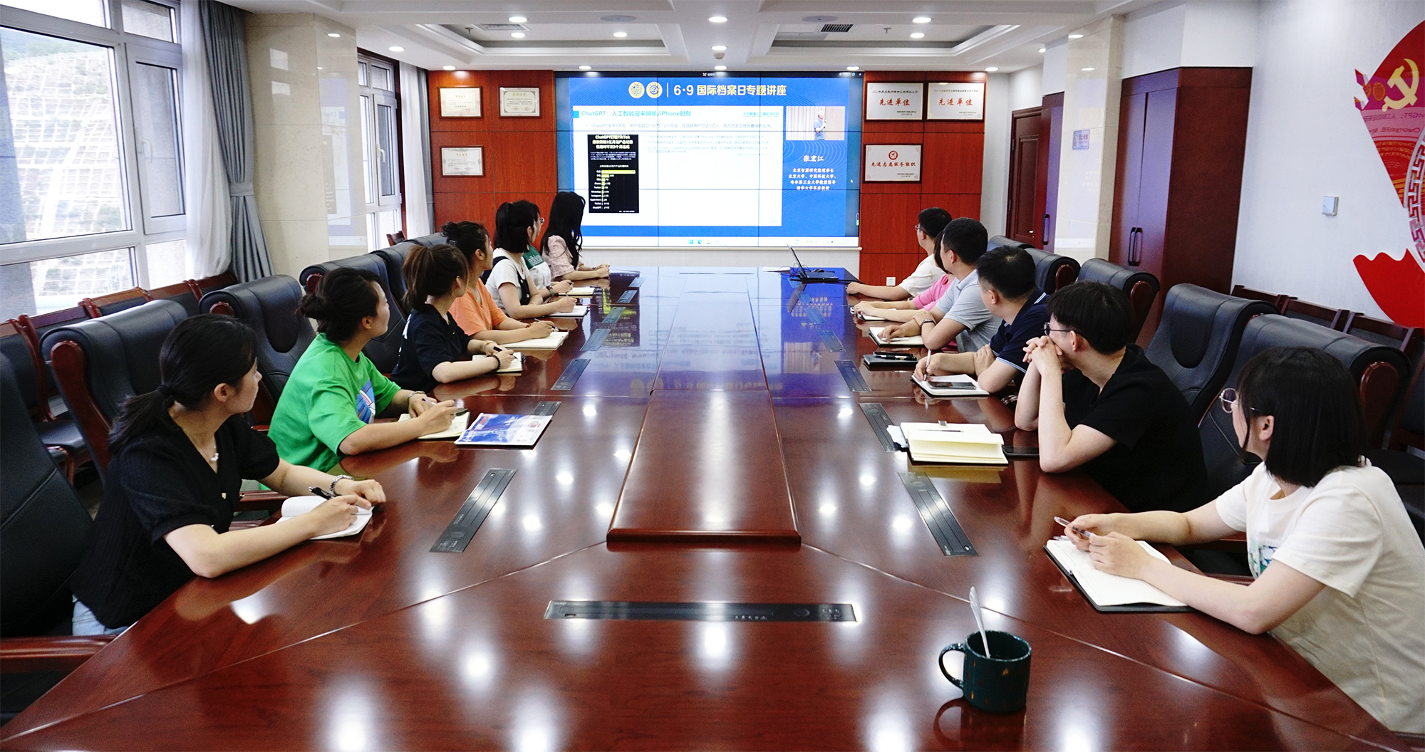 一是利用LED大屏播放“檔案在你身邊”系列宣傳片,通過宣傳片向干部職工普及相關(guān)法律法規(guī),增強檔案意識;二是組織集團公司各部室及子公司檔案管理人員集中收看國家檔案局、中國檔案學(xué)會組織召開的“國際檔案日專題講座”。