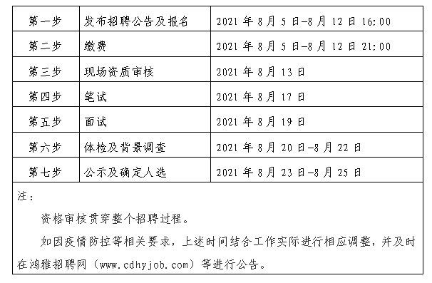 2021年8月5日至 2021年8月12日16:00 在鴻雅招聘網(wǎng)(http://www.cdhyjob.com/)、鴻雅微信公眾號(hào)、國(guó)控集團(tuán)官方網(wǎng)站等發(fā)布招聘公告。